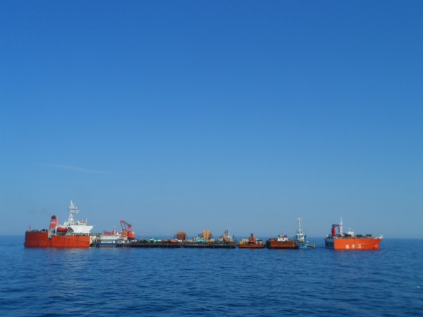 "Teras Pegasus2 & Diamond 181" on process for berthing at freeport, Abu Dhabi.